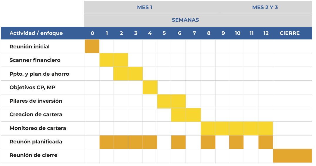 Disclaimer: Nuestro programa no está pensado para una dependencia permanente, el propósito del mismo, es educarte, resolver tus inquietudes y entregar las herramientas que te permitan ser autosuficiente y tomar el control de tu crecimiento financiero.